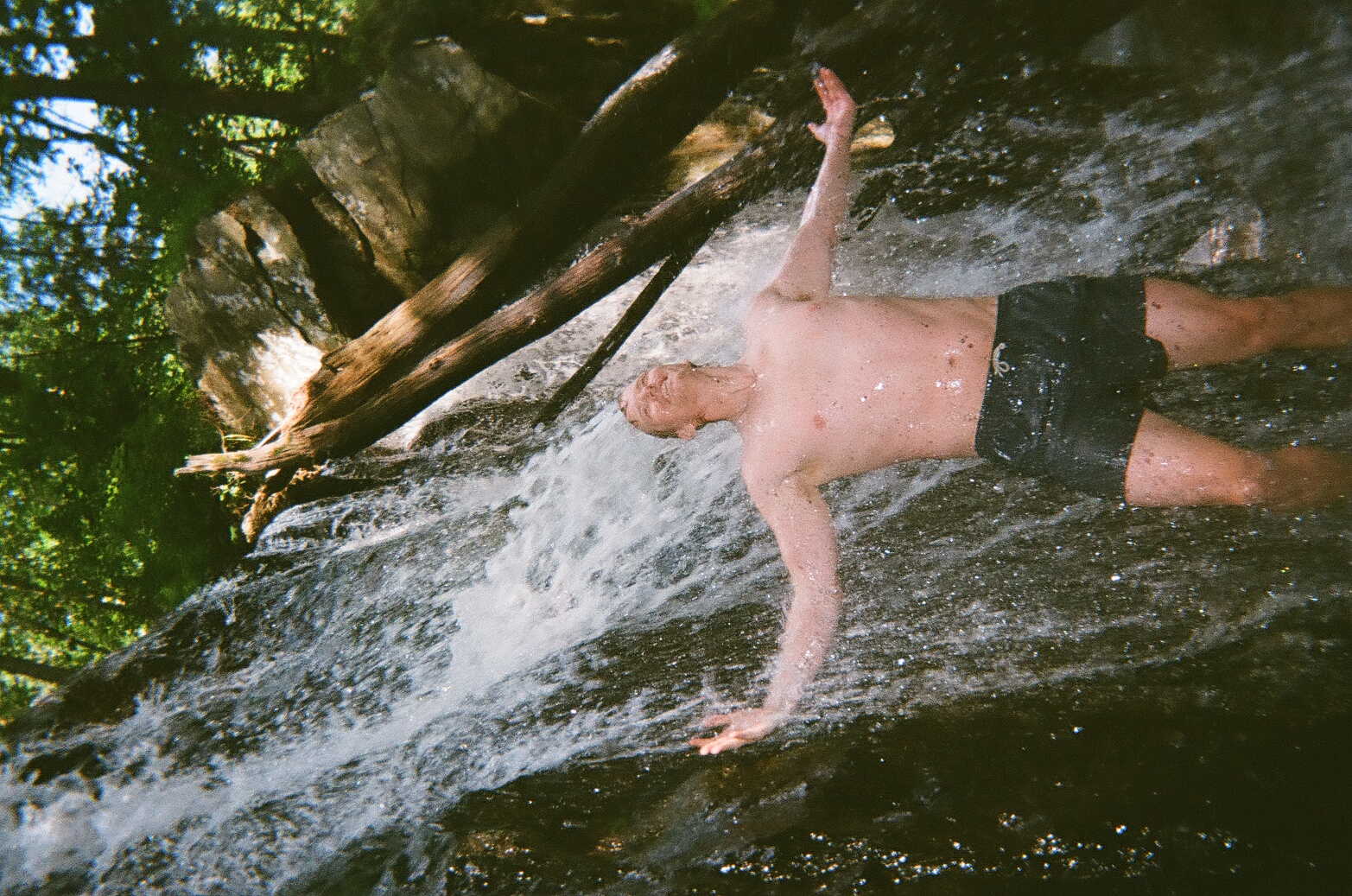 Taking a cold shower at Killgore Falls.