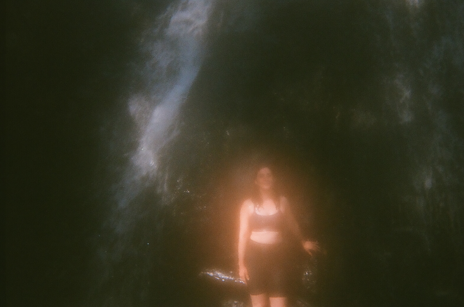 Sheena glows by a waterfall