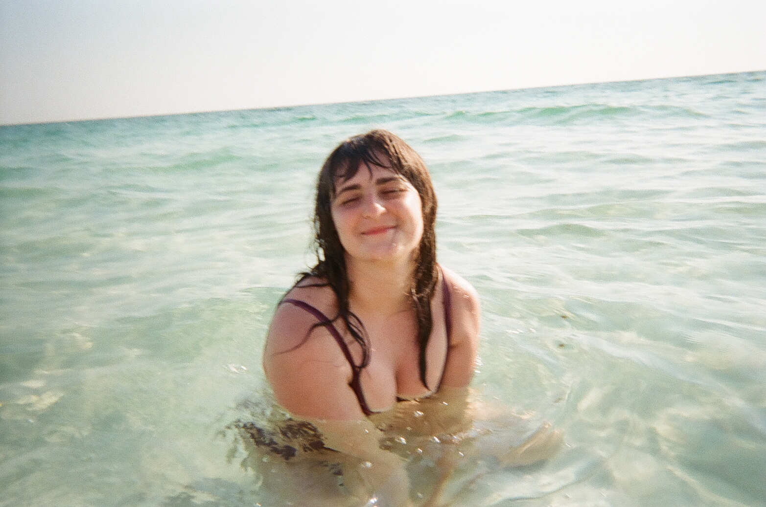 Sheena enjoying the calm and clear waters of Miramar Beach.