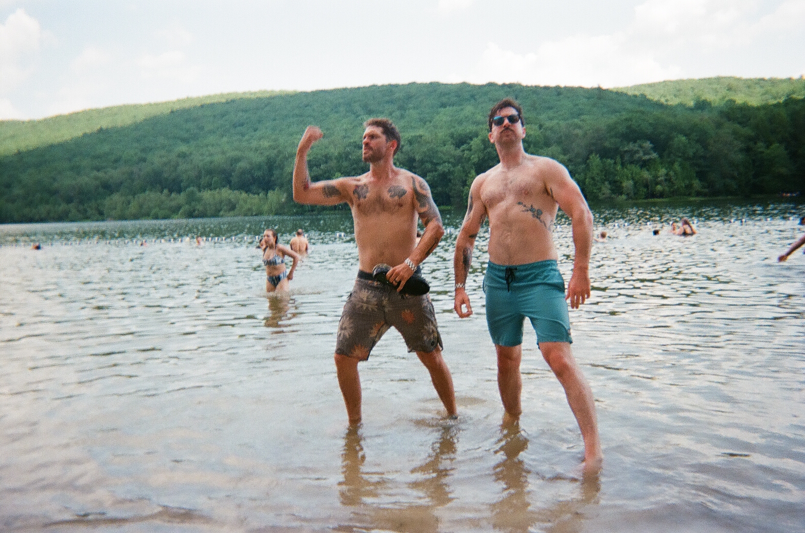 A couple hunks posing at the Tuscarora State Park Lake Beach