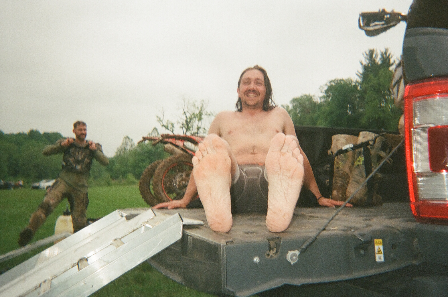 Kevin showing off his soggy feet after a wet and wide time riding White Rose's Spring Trial Ride.