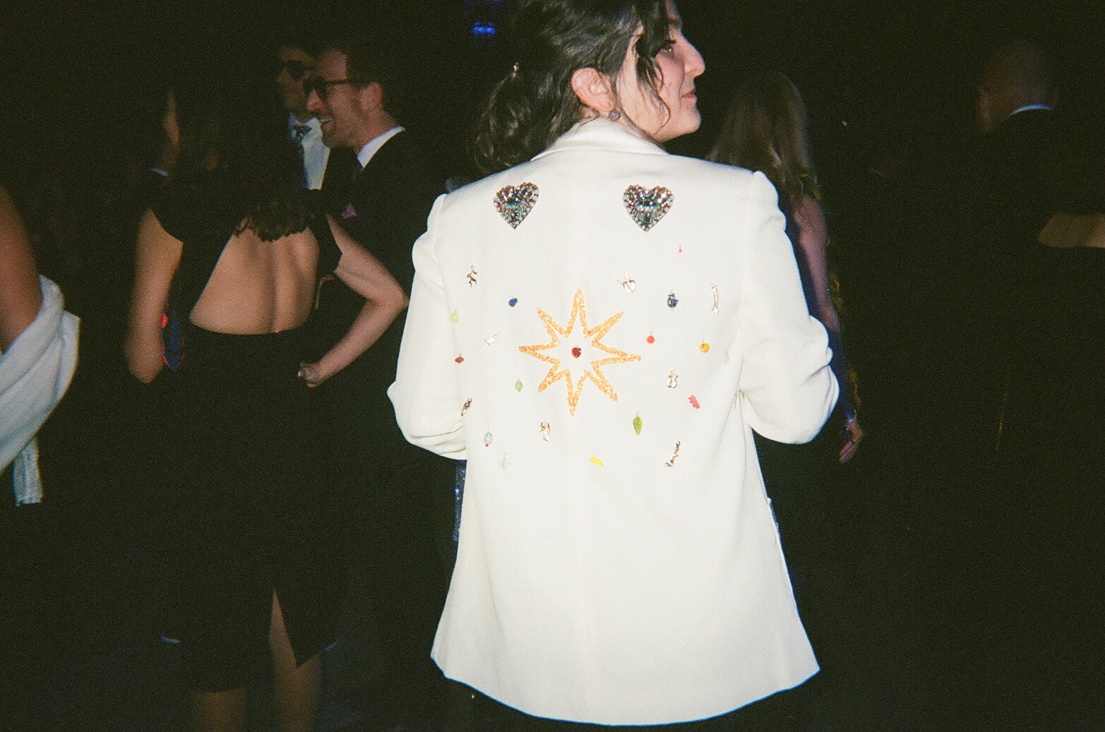 Documenting Sheena's customized blazer for the library fundraiser party.
