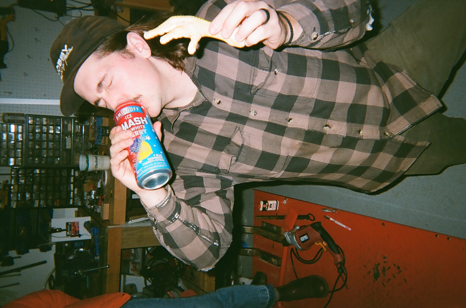 Kevin got "iced" in his garage during his birthday party while holding a chicken foot.